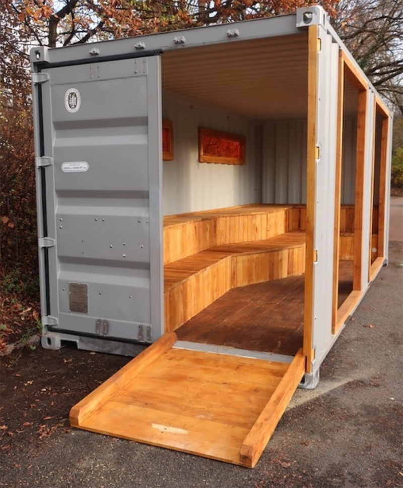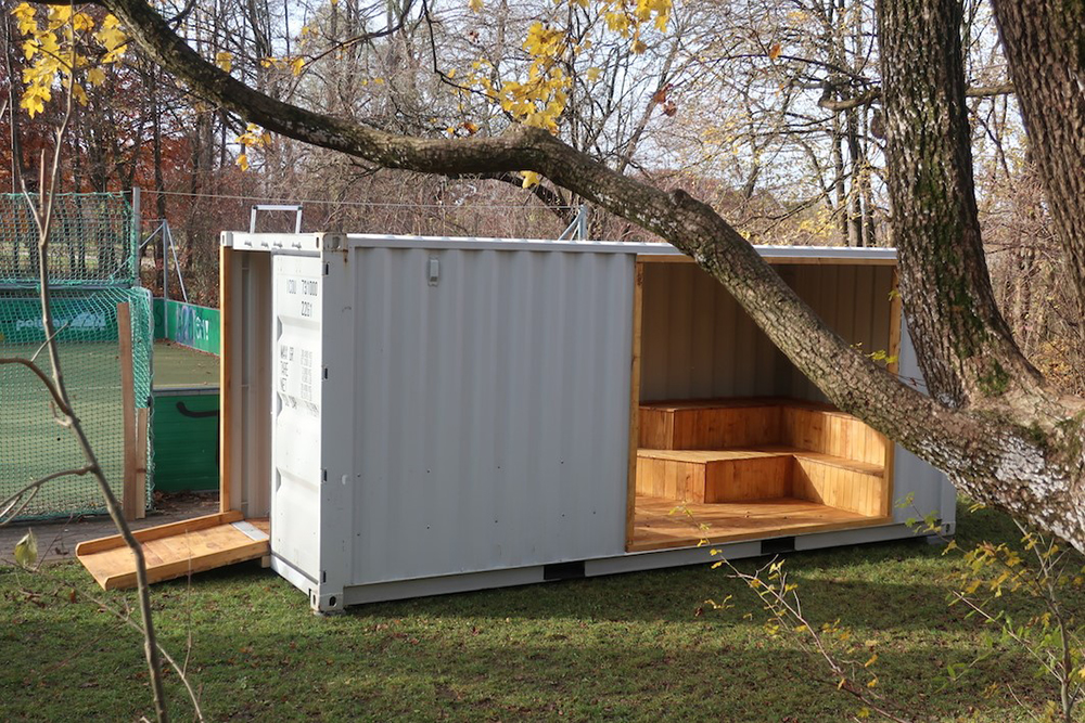 Ein Container für eine Kita in Wolfsburg, als dauerhafte Spiellösung aufgestellt.