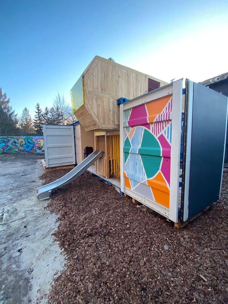 Unser Auftrag: einen Container-Spielplatz ohne Container zu bauen. Hat geklappt.